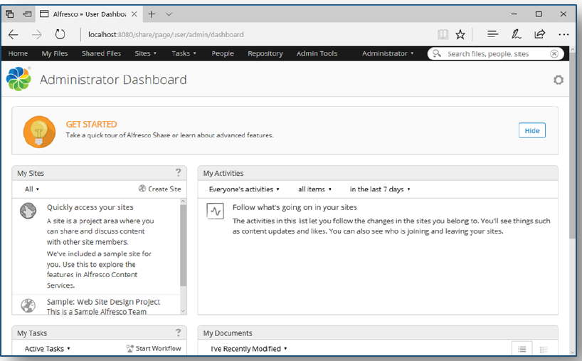 You are now ready to install Alfresco which is an example of a typical CMS system.