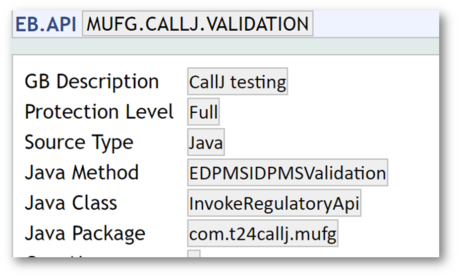 - Create records in the EB.API application for the java methods which are present in InlendInvokeRegulatoryApi.jar.