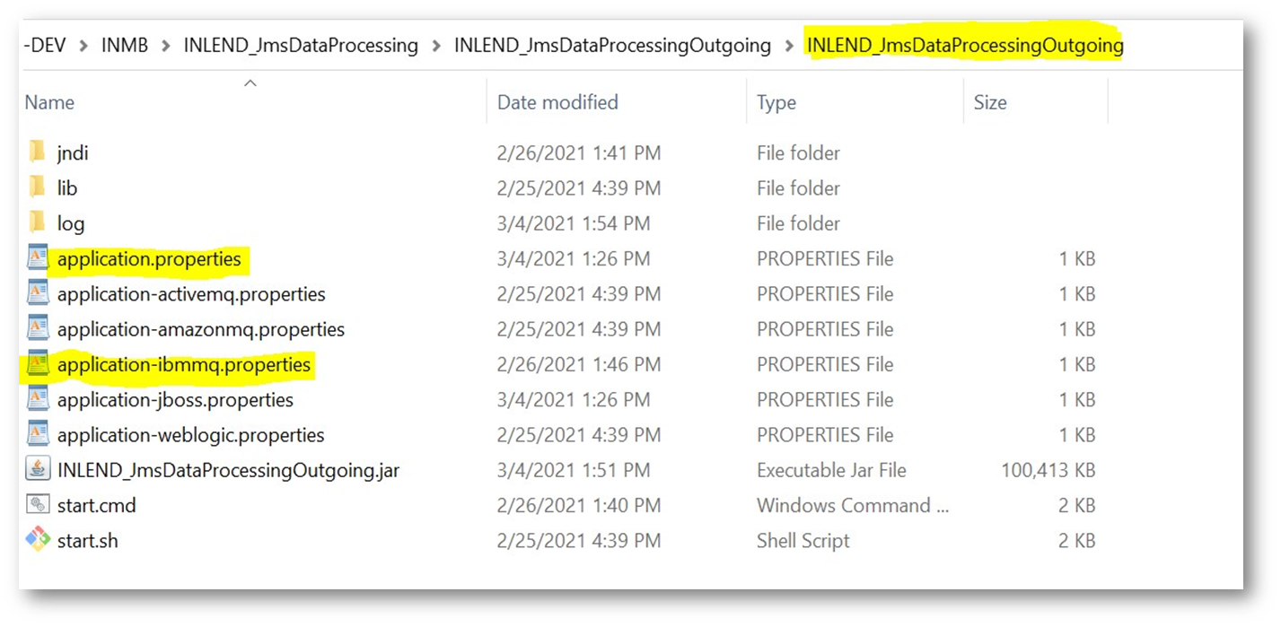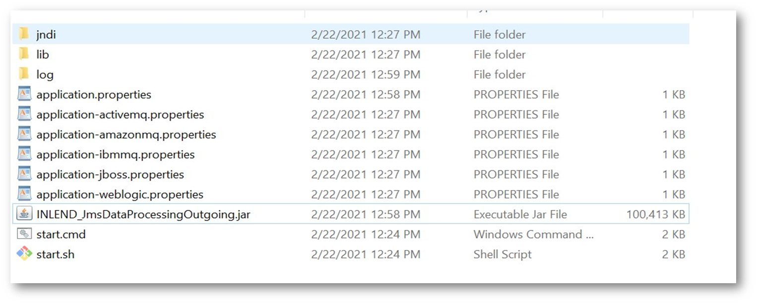 - Once the ear is deployed successfully, extract the contents of the INLEND_JmsDataProcessingOutgoing.zip folder into the local machine folder.