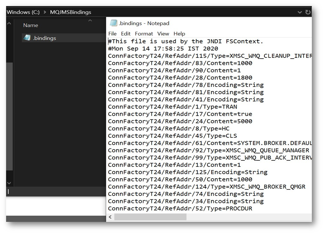 - Create an empty folder (for example, C:\MQJMSBindings) on the computer where the IBM WebSphere MQ application is installed.