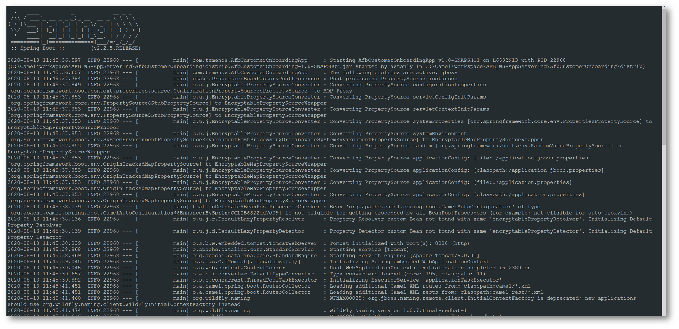 - In the start.cmd file, set the following details.