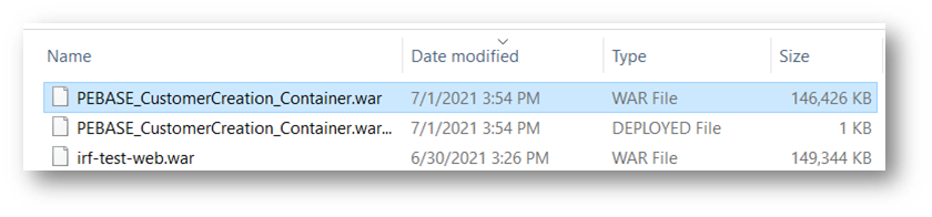 - Build the PEBASE_CustomerCreation_Container and generate the war file.
