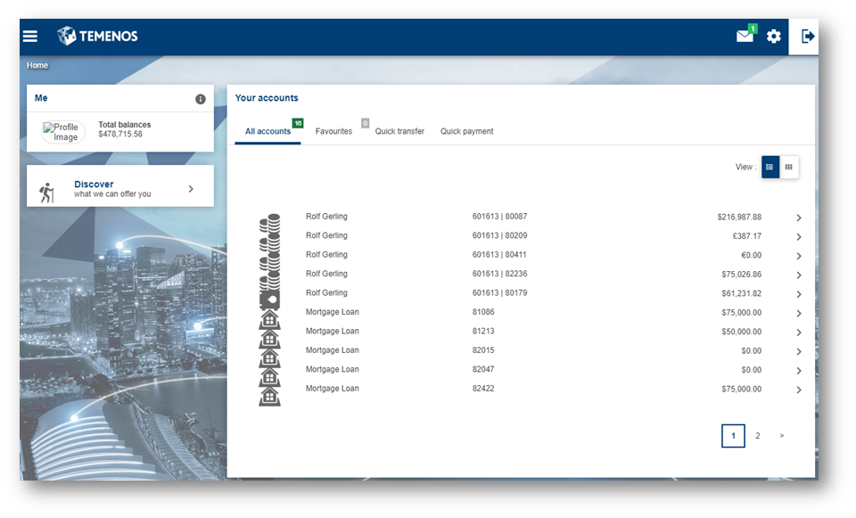 - If all the configuration steps were successful, the Internet and Mobile Banking Retail application will load the user’s homepage.NOTE: Note that within model bank’s Internet and Mobile Banking Retail, user names, accounts and the account balances used in the screenshots are for representational purpose only. The screenshots may not show the consistent balance amounts and whatever is shown is only for the user's understanding.