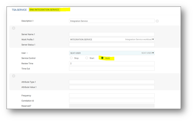 - Set the INTEGRATION.SERVICE to Auto mode and TSM to Start. This is the service that is used to poll out the IF events data to the corresponding queue.