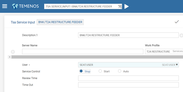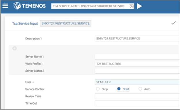 - Initiates the T24.RESTRUCTURE.FEEDER service by setting service control to Auto in TSM.