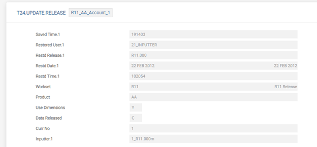 - The STANDARD.SELECTION record, T24.UPDATE.RELEASE
