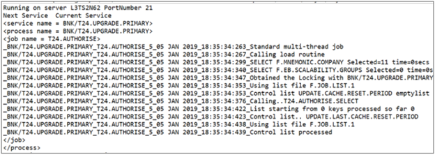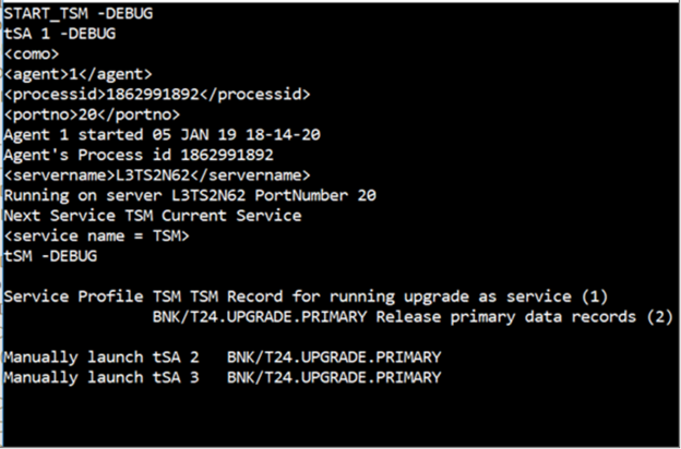 - After this step, the Temenos Transact system becomes online after a manual verification (if required). This allows all services in TSM to run in all active servers. One of them is T24.UPGRADE service, which continues to upgrade Temenos Transact system by releasing secondary data items (remaining data items from TEMP.RELEASE).