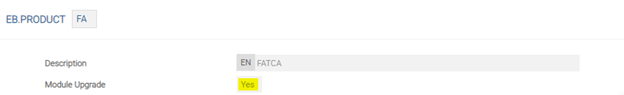 - In EB.PRODUCT, update MODULE.UPGRADE as Yes to enable module upgrade.NOTE: