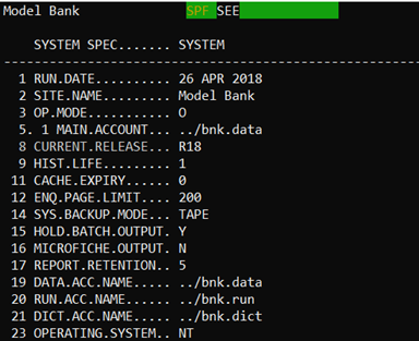 The T24.UPGRADE service also updates the SPF SYSTEM record as shown below.