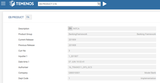 - Run the T24.UPGRADE service to view the current and previous release details of the corresponding product in EB.PRODUCT.
