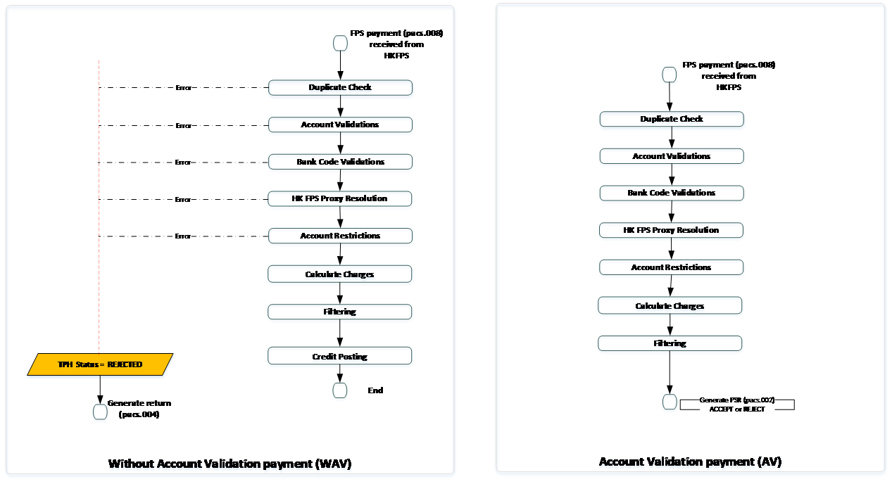 | Cut-off check | HK FPS is a 24x7 system that operates with no clearing cut-off. Hence, the payment is not validated. |