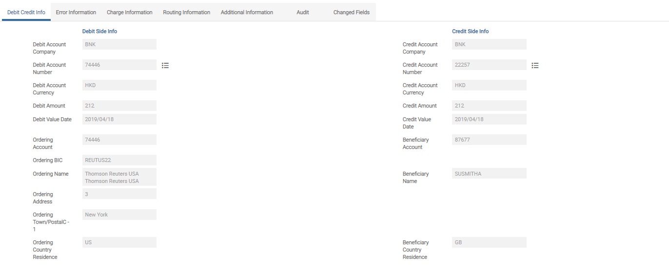 | Regulatory Reporting Information | Free text | O | Allows maximum of 35 characters |