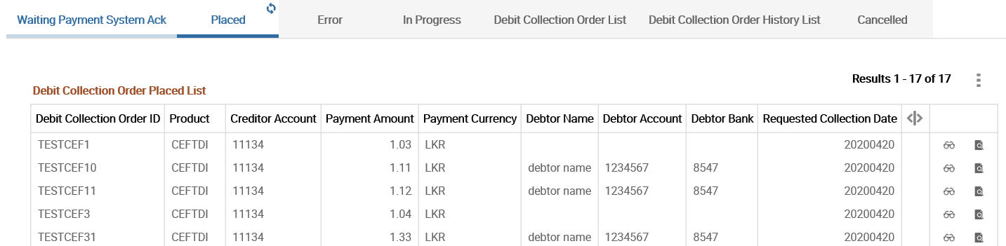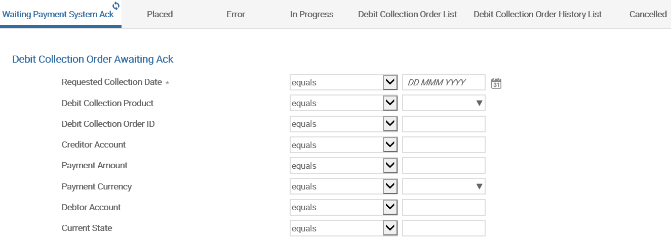 DB enquiry allows the user to view collection order and payment system status. It also enables to customise the view based on the bank’s specific requirements (which the bank needs to maintain).