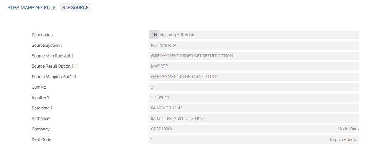 The PAYMENT.ORDER (PO) application can receive payments from various Temenos Transact systems such as RTP, Forex, and so on. After the payment is completed, the PO application can update the status of the payment to these source systems. This can be configured in Payment Order Ps Mapping Rule setup.