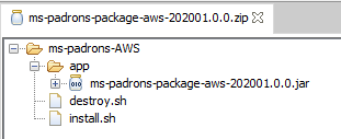 This section shows the folder structure of Padrons package. It is available as single release bundle (For example, ms-padrons-package-aws-<release.no>.zip). It contains:
