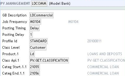 The following screenshot shows the PV.MANAGEMENT record for commercial and personal loans: