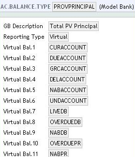 For standard provisioning, different provision percentages can be applied to different types of balance. A virtual table PV.PROVISION.TYPE, with the following records may be defined as: