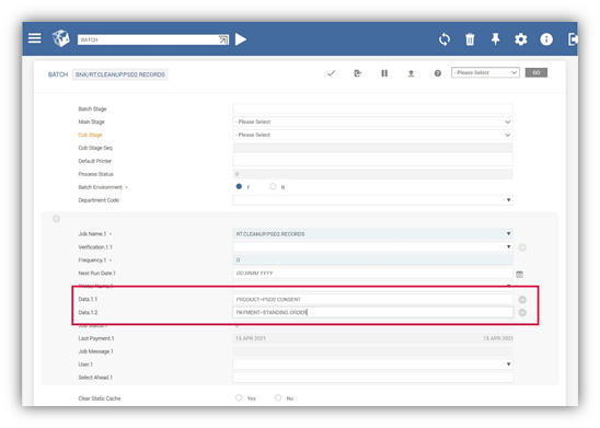 - Recurring Payments via STANDING.ORDER – Any records older than the retention period defined in PX.PARAMETER are deleted.