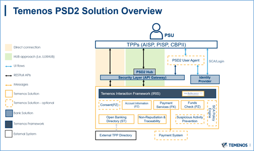 - PSD2 Hubs – Not provided by Temenos, but can be optionally interfaced.