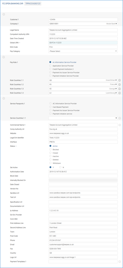 - The Set Active field holds the bank’s own status of the TPP.