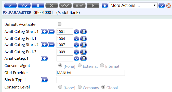 PX.PARAMETER as consent for payments is not required under the Berlin Group standard.If the Consent Mgmt field in PZ.PARAMETER is set as EXTERNAL, the consent management process is handled by an external system and is not within Temenos Transact.