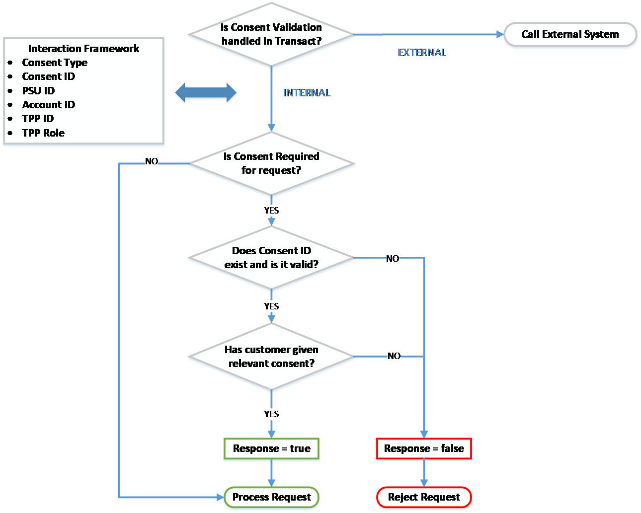 If the TPP Validation is successful and it is identified that the TPP is allowed to make a particular request, the system performs a second check to identify if consent is required for the call.