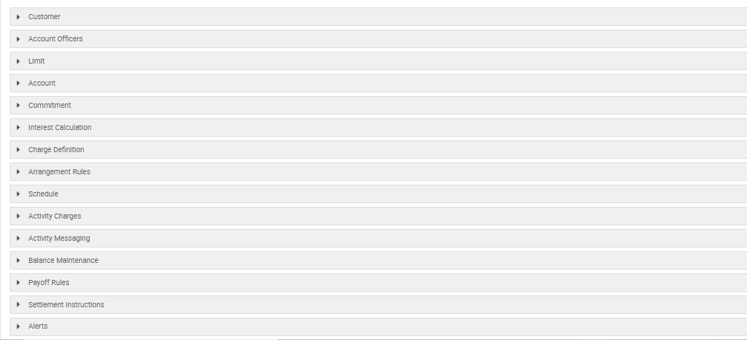 Activity Presentation Property Class allows the user to assign screens at Activity level (creation of new arrangement, update customer, etc.), Property level (named instances of the Property Class) and Property Class level (Interest, Charge, etc.) .