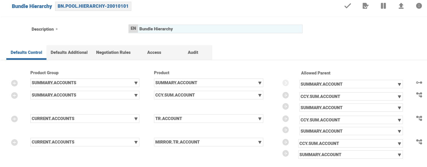 A sample Bundle Hierarchy Product Condition for a standard Balance Netting Pool structure is shown below.