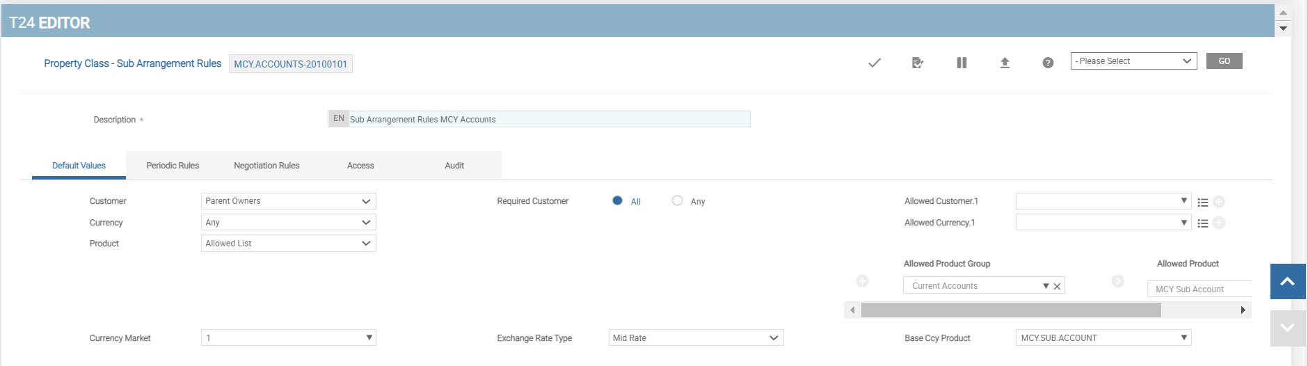 • Allowed currencies and products for the sub-Arrangements under a master arrangement.
