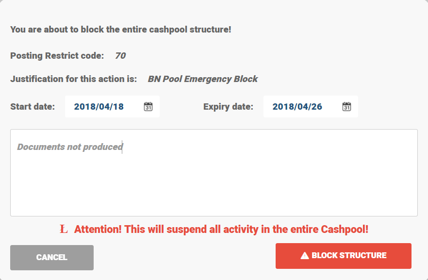 BN pool can be closed during Draft, Preliminary and Live status. To close the BN pool structure, right-click the 3 dots on Master card and select Close Entire Pool. Closure of live BN pool online is not possible. It is possible on the next business day or on a future date.