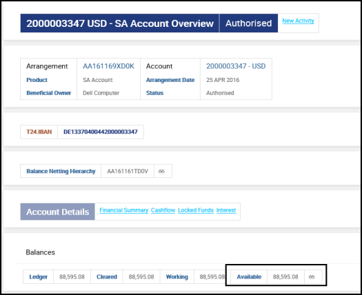 The above screenshot shows that the balance (USD 88,592.08) is moved from (2000003347) to (2000003355) account.