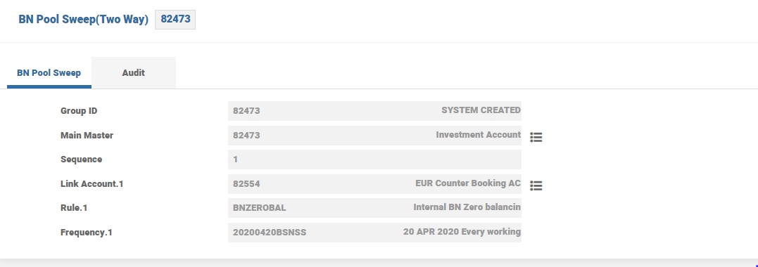 - Click Save to save the BN pool structure in GUI. GUI passes the information to Temenos Transact to store the placeholder details. The user can save the changes in GUI after the BN pool structure is approved by corporate. When the user saves the Master arrangement in GUI, Temenos Transact does not any validation.