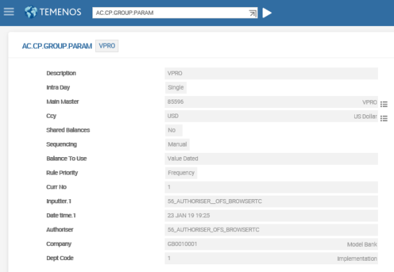 Credit check is set for internal or external transactions or both. When the options is Null, the credit is applied during the transaction processing. Click Save to update the changes in Temenos Transact.