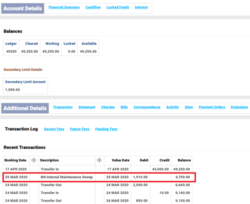 - Internal sweeps are set for the account