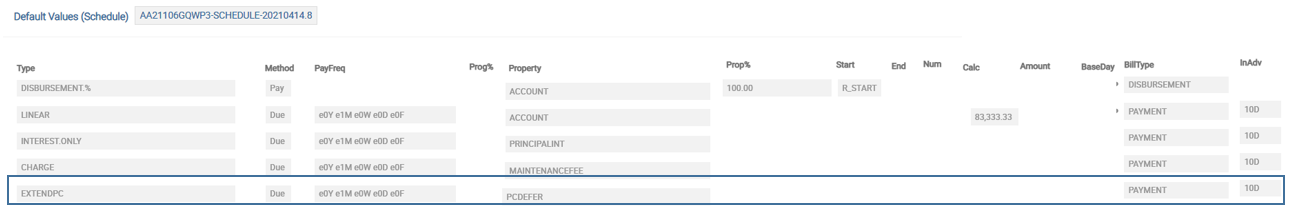 The Payment Schedule should have bills issued in advance for the PCDEFER Property.