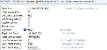 User can request a periodic camt.053 statement for an account by setting the Xml Stmt Type field with the CAMT.053 value in the ACCOUNT.STATEMENT application. For producing XML statement, Swift Statement Type field must be used.