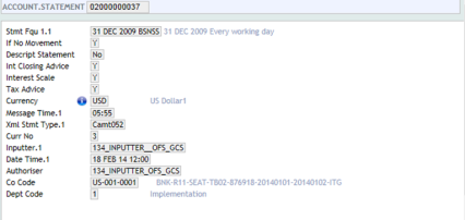 The statement processor (as part of the Close of Business process) generates the type of statements (example, camt.053, and MT940 Print Statements) that need to be produced for the account as defined in the corresponding ACCOUNT.STATEMENT record.