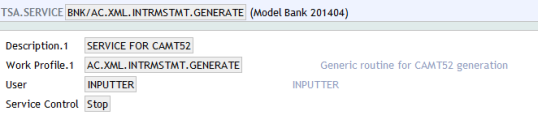 The following screenshot shows the AC.XML.INTRMSTMT.GENERATE service.