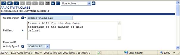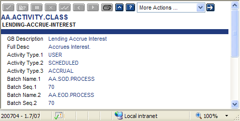 Activities that determine their processing frequency as scheduled tasks are defined in the AA.ACTIVITY.CLASS record. The Activity Type field contains ACCRUAL to indicate this. This is pre-determined and cannot be modified.