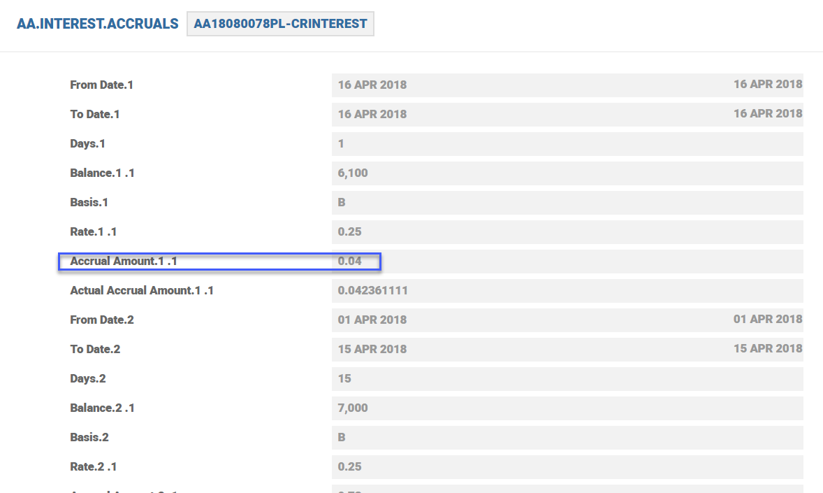 • For each archival, the system creates a unique ID in the AA.INTEREST.ACCRUAL.HIST table and the format of this ID is: <AA.INTEREST.ACCRUALS record ID>#n, where n denotes the sequence number of the archival process.