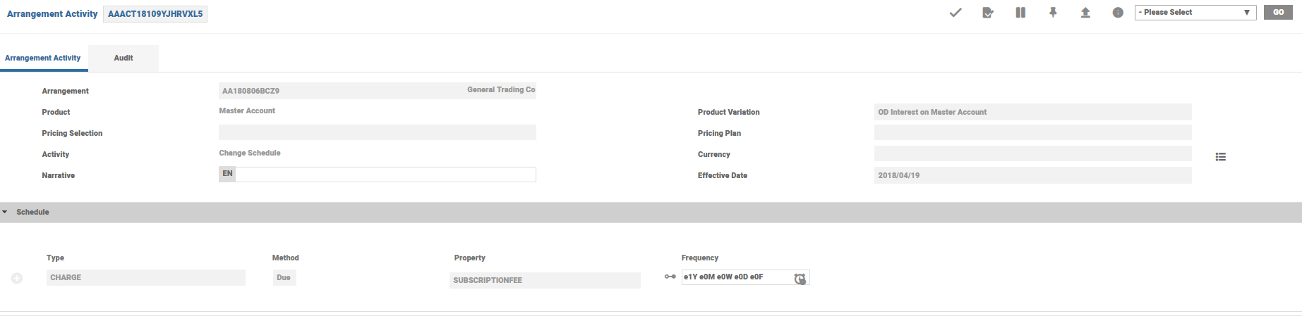 Add standalone account ACCOUNTS-TRANSFORM-ARRANGEMENT Scheduled by orchestration service and processed by COB orchestration process