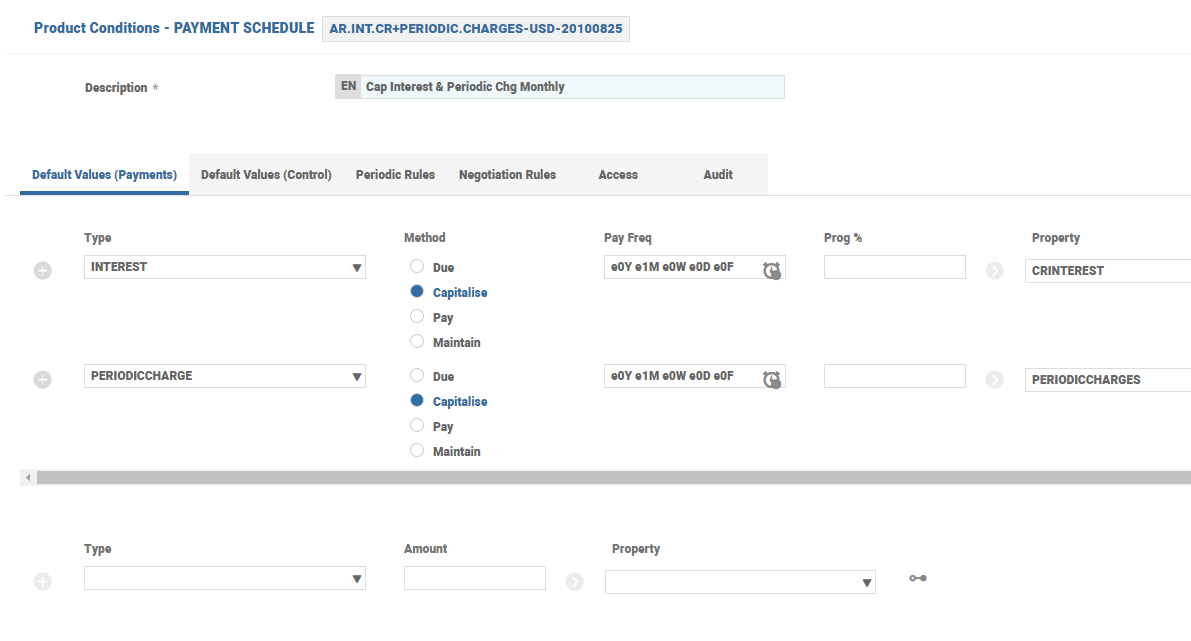 The interest rate can be fixed or floating and with or without margin. Compounding interest is also possible. The Interest Property Class describes the basic features. Given below is the configuration of the advanced features of the Interest Property Class.