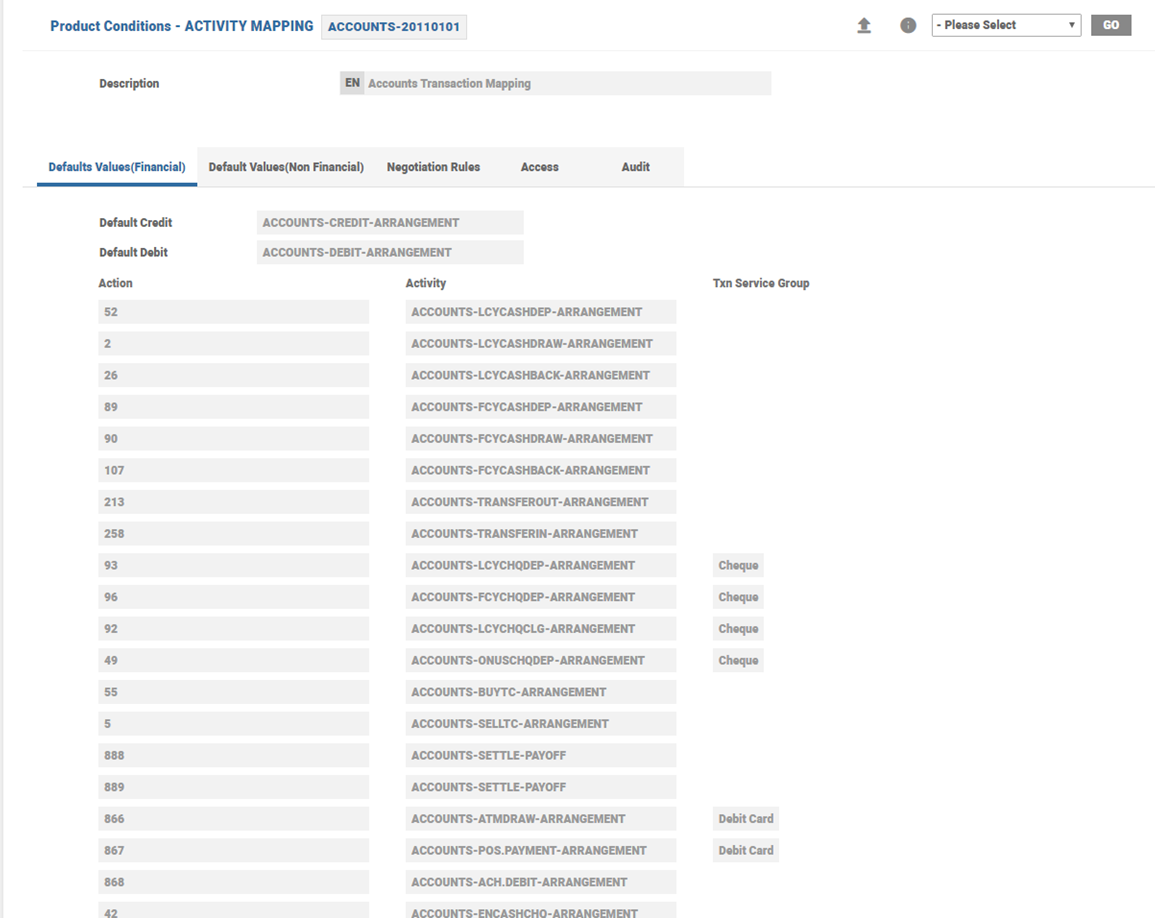 Any financial transaction, either triggers ACCOUNTS-DEBIT-ARRANGEMENT or ACCOUNTS-CREDIT-ARRANGEMENT Activity Class. The credit and debit arrangement activities follow direct accounting and does not have to be a part of payment or payout rules. Therefore, these movements are against the balance of the account.