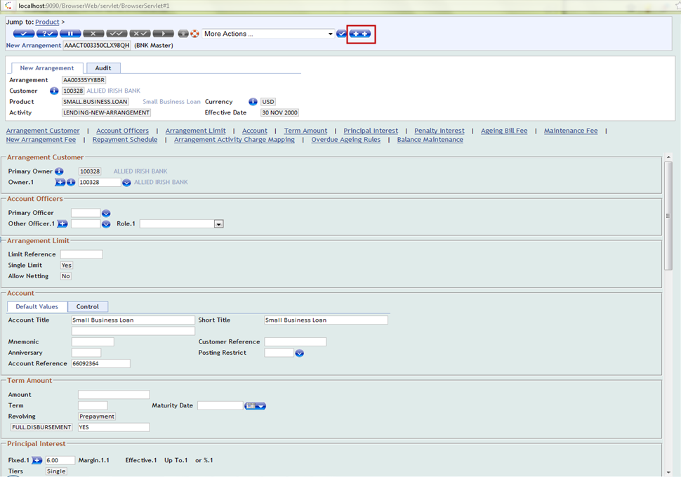A Show tabs for expansion icon is provided in the tool bar of AA.ARRANGEMENT.ACTIVITY and AA.SIMULATION.CAPTURE screens. It helps the user to identify the property for which the future dated condition can be added.