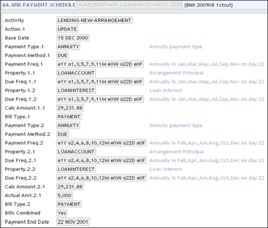 The below screen shot displays the AA.PRD.DES.PAYMENT.SCHEDULE record.