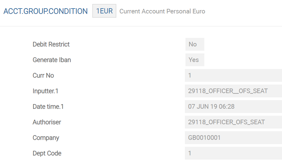 The simulation process triggers the alternate account number generation, using the appropriate configuration in the COMPANY application and considering the rules defined in the IBAN Structure (IN.IBAN.STRUCTURE) for the country.