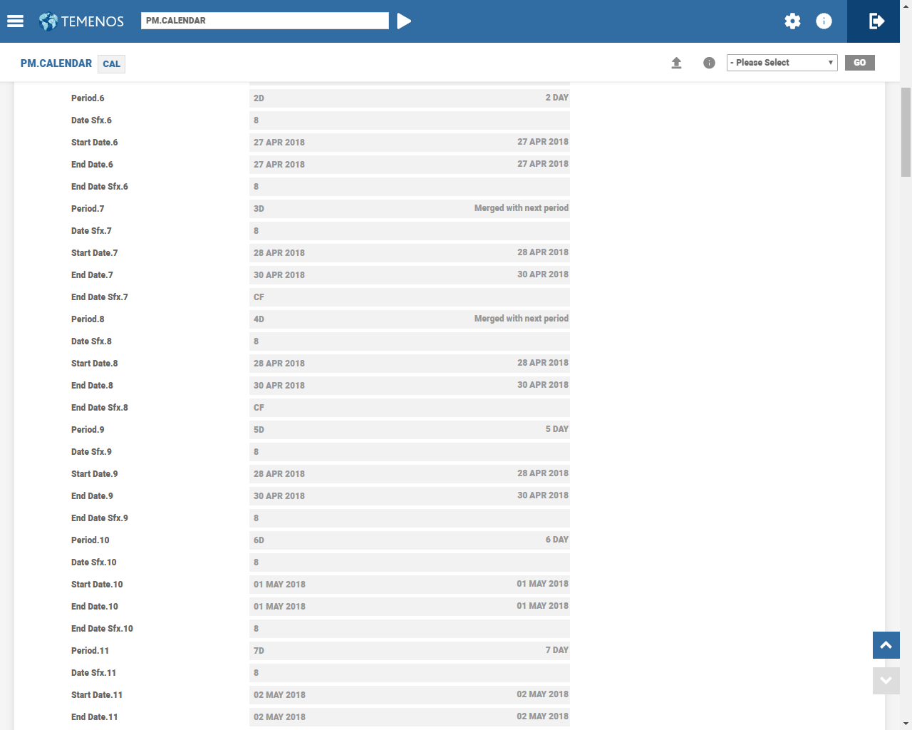- Defines the forward periods to be displayed by specifying which PM calendar (