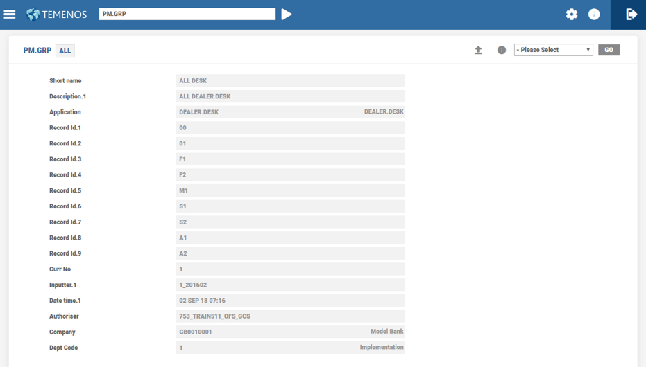 This table helps create different groupings of DEALER.DESK,FX.POS.TYPE and CURRENCY.MARKET. For example, if Spot Dealers and Money Desk need to split cash flow enquiry along with consolidation of all dealers, the IDs (setup on the DEALER.DESK table) identifying the individual dealers are grouped together as appropriate, with a unique key to identify the group. On creating the Enquiry, it is included in the PM.POSN.REFERENCE file of the key identifying the group that satisfies the grouping requirements.