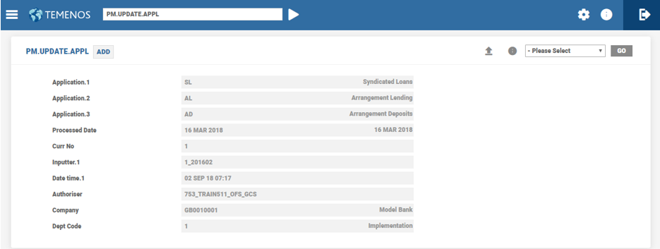 PM.UPDATE.APPLrecord with ID as ‘ADD’. - For an already enabled product, specify in the