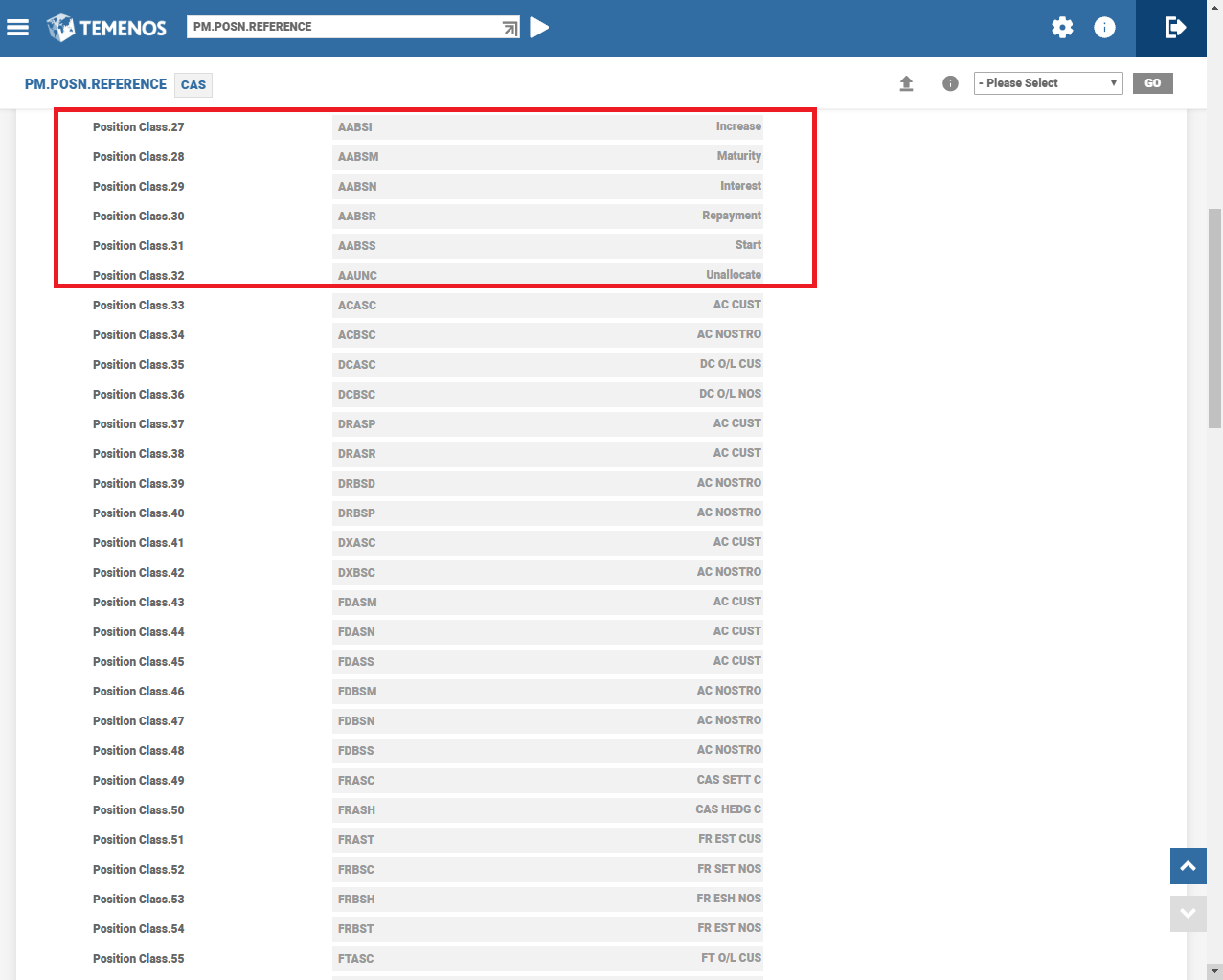 For example, if the Position class for GAP for principal increase is ‘AAPMI’, the CAS position class is ‘AAASI’. The third and fourth characters are taken from overnight position class defined for the category of the settlement account.